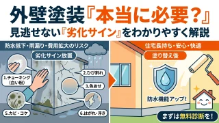 外壁塗装の検討から契約までの全工程をステップ形式で詳しく解説。劣化状況の確認から情報収集、複数社への見積もり依頼、現地調査の立ち会い、業者選定の基準まで網羅しました。初心者が迷わずに進められる「やることリスト」を活用して、後悔のない納得の業者選びを実現しましょう。