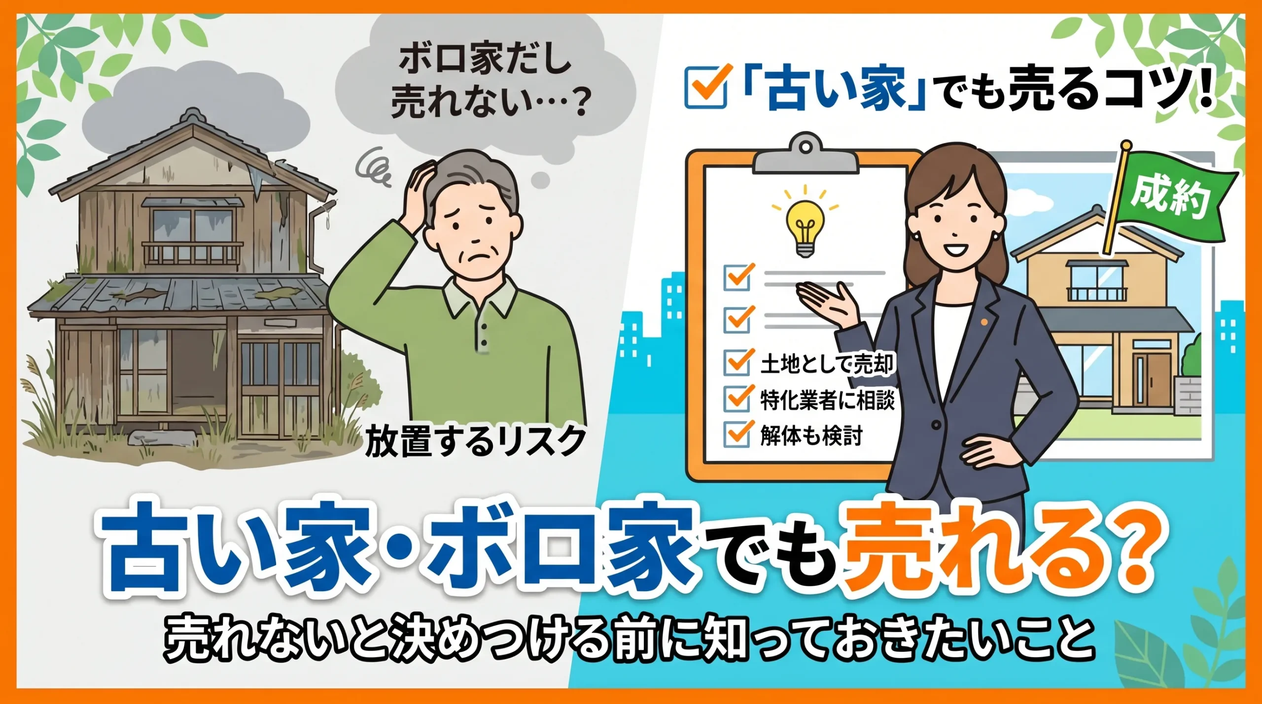 「こんな古い家は売れない」という先入観は、正確な判断を阻害する要因になりがちです。実際には、立地、市場環境、専門家の知見、複数の出口戦略の組み合わせにより、一見すると売却不可能に思える物件でも、何らかの形で手放すか、新たに活用する可能性が存在します。