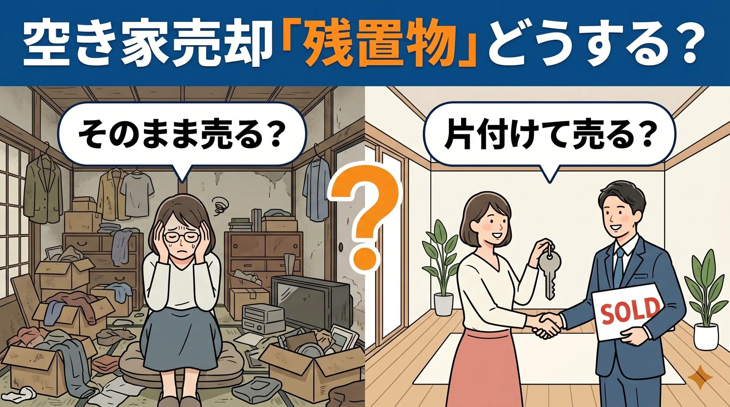 空き家に残置物がある場合でも、売却は可能です。いくつかのアプローチがあります。