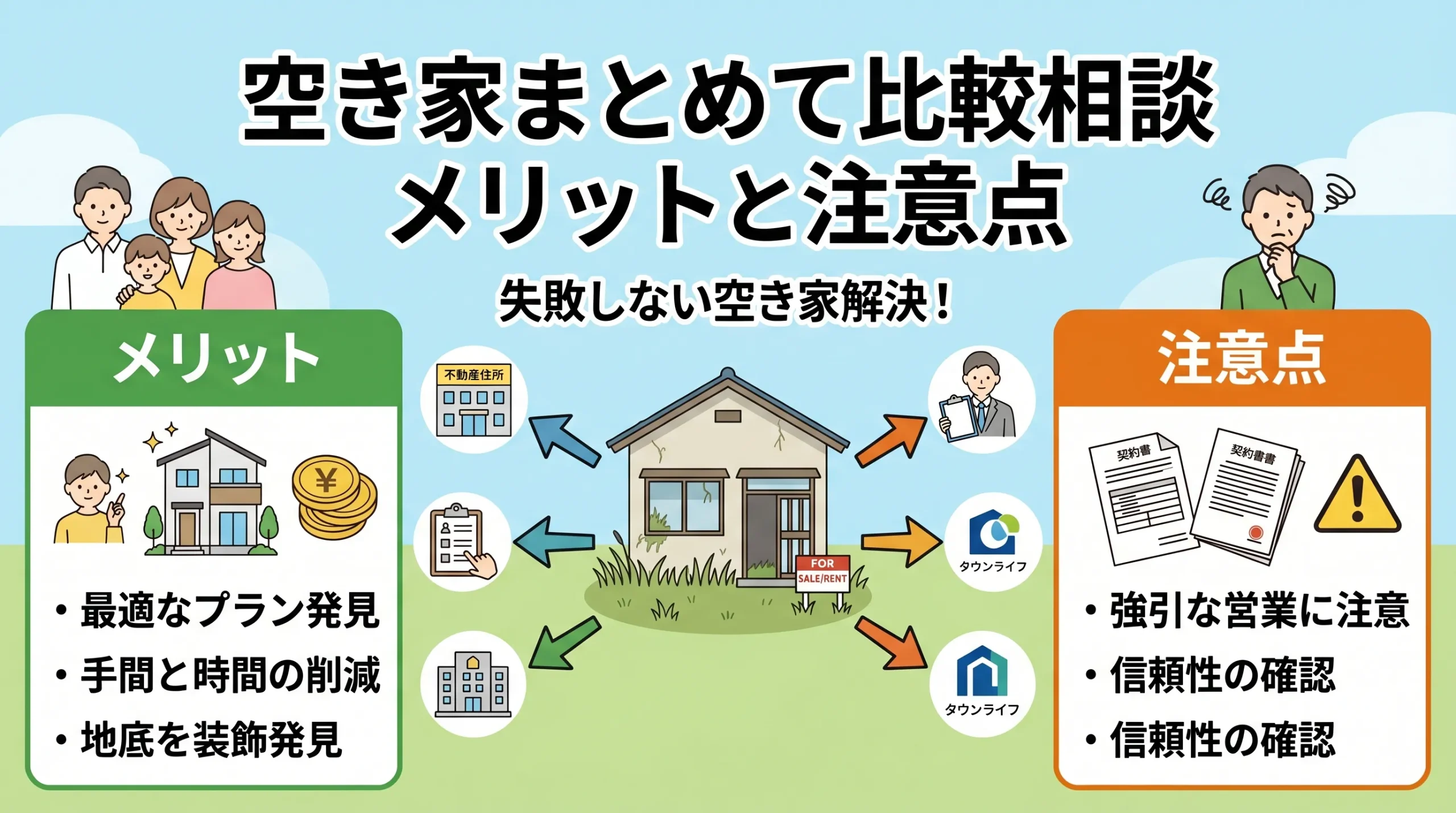 こうしたサービスは、空き家の処分に関する判断をより効率的に進められる利点がある一方で、活用する際に注意すべき点も存在します。本記事では、複数の専門家から同時に相談を受けられるサービスの仕組みと、そのメリット、そして利用時の注意点について説明します。